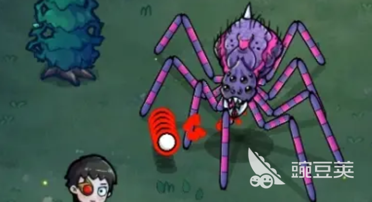 第三种攻击方式为蛛网球攻击。巨蛛会积蓄力量后吐出蛛网球,击中玩家会直接造成伤害,落地后留下的蛛网会使玩家动作变慢。当面对这样的攻击时,玩家应该仔细观察蛛网球落地后的阴影,从而提前预判出蛛网球落地的位置,进而避开蛛网球落地的地方,防止被精准打击。