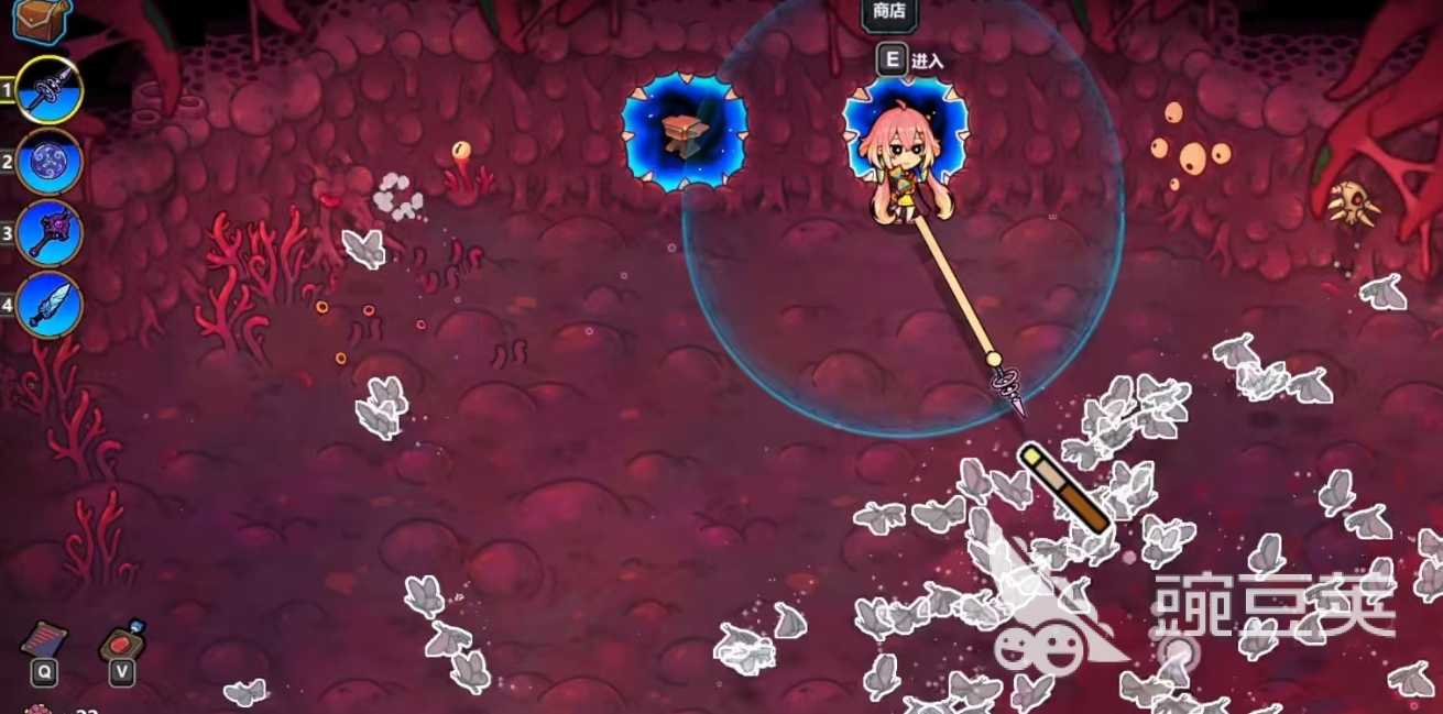在技能组合使用中,分裂与雷霆核心结合之后会产生非常高的伤害。以蝴蝶技能为例,三只蝴蝶造成的伤害为8×3=24,雷霆核心技能在爆炸之后还会产生范围伤害。雷霆核心造成的输出是8的25%,也就是2滴血,而每一个分裂出来的小蝴蝶也都可以继承这个效果,九个小蝴蝶的总伤害就变成了18!所以,最终一轮的伤害就可以达到24+18=42,在游戏初期这个数值非常强势。