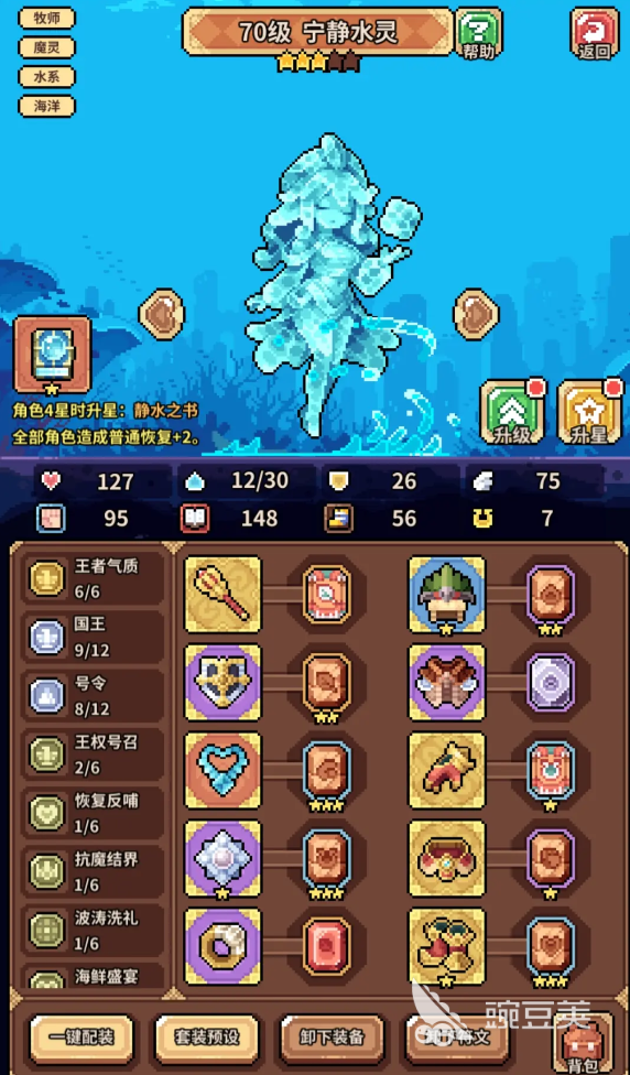 在开荒时期,玩家主打的就是推图,并且还需要挑战日常的资源副本,此时玩家可以选择宁静水灵作为辅助。辰龙作为主c,水晶菇娘作为拉条。在这里,对于众多的玩家来说,成龙能够有效的依赖滋润来达到增伤的目的,宁静水灵的群体治疗跟滋润的覆盖其实是比较厉害的,并且在战斗的过程当中,它其实还能够提供生存跟增伤的目的,在这里,水晶菇娘的魔力回转加速,就能够有效地解决辰龙技能释放的频率。