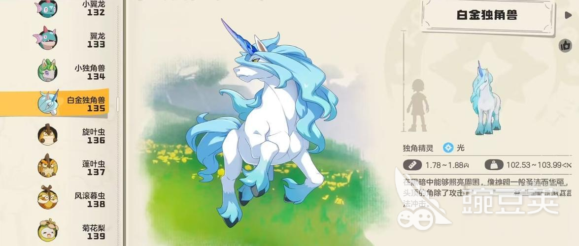 白金独角兽在陆地坐骑中是移动速度最快的一类坐骑,也可以说是陆地坐骑中的顶配坐骑了,在平原地区骑乘白金独角兽的话,能够感受到犹如风一样的奔跑速度,不过该精灵需要玩家在游戏的中后期才能捕捉到,而且培养起来比较困难。