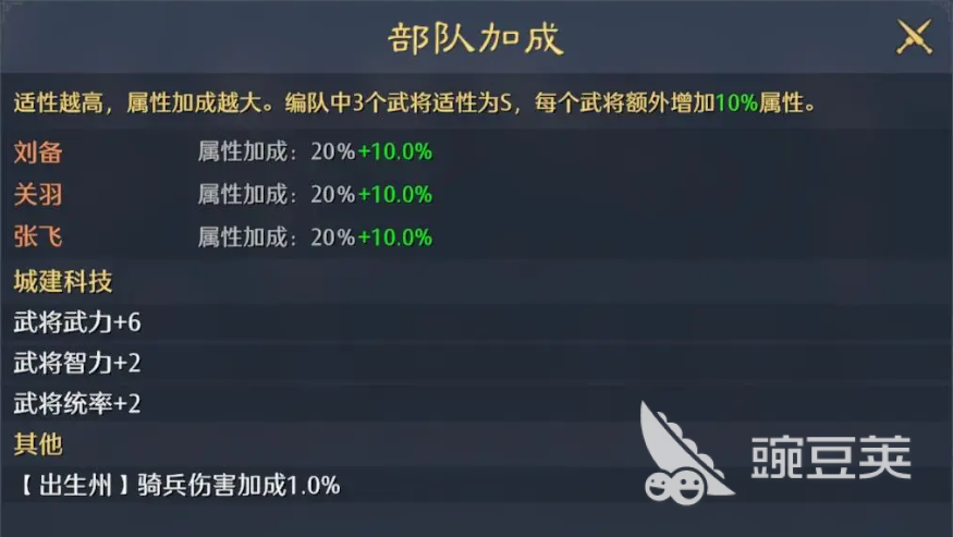 游戏中的攻城数值决定了后期大家参与攻城战的时候,对敌方建筑的攻打能力,那么在这里伤害数值越高的话,就代表大家的攻城数值越高,所以后期如果大家想要快速的参与各种攻城战的话,那么这里大家就要核心的培养三名左右的武将,将他的属性点全部都放在攻城效果上面,这样的话,在专业的攻城队上面就会让大家后期在整体的效率上面有更高的对战加成,而在战力加成效果上面,大家需要注意,在实战里面其实也有一个途径,就是派遣在同一阵营当中的武将,他们在进行共同作战的时候可以根据自己的属性加成带来10%的提升效果,那么在构建此类队伍的时候,他们根据三名s级的武将组成核心,此时带来的属性增益就非常强势了。