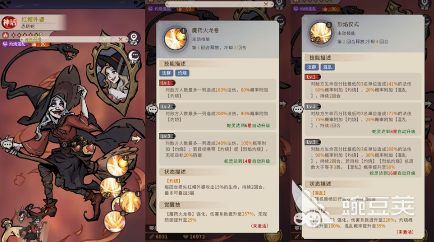 那么另外一个就是红帽外婆,红帽外婆在目前的游戏当中带来的一个效果,主要是利用其中的伤害组织来添加足够的灼烧能力,所以目前来说的话,用她来攻击现在血量比较低的敌人,不仅可以造成伤害还可以快速的控制住敌人,所以在队伍需要收割能力的时候其实也是可以用红帽外婆的,当然前期大家也知道如果火队当中只有这几个输出角色的话是肯定不够的,所以这个阵容里面需要更多的阵容c位角色,其实就可以用红帽外婆来进行培养,另外的话,大家可以用到的还有法海这个角色。