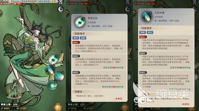 而小小红帽的话,最重要的复活是一定要找机会用的,就凭借这个能力她上场的机会是不少的,小小红帽一般情况下她用作控制能力的话,因为有一定的寒冰状态,就可以降低敌人身上的一些防御能力,在自身加成效果上面可以利用小小红帽的技能带来暴击率的提升,而柴郡猫的话放在这里主要是用来净化的,因为他在我方有一些负面效果影响比较大的时候,他就可以带来足够的驱散功能,还可以给我方需要的角色带来一定的持续数值,在攻击力加成上面,柴郡猫可以带来的增长也是不少的。