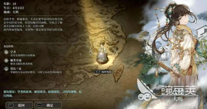 游戏一开始可以选四个主角,每个人的背景故事和能力都不太一样。如果是第一次玩的话,建议选云睦这个角色,倒不是因为别的原因,主要是她开局的环境相对稳定一些。东亚这片海域的地理位置对国内玩家来说比较熟悉,航行的时候不容易搞混方向。而且她的特殊能力在后期贸易方面很有用处,积累的交易知识越多,赚的钱就越多。其他几个主角各有各的优势,不过新手入门还是稳妥点比较好。