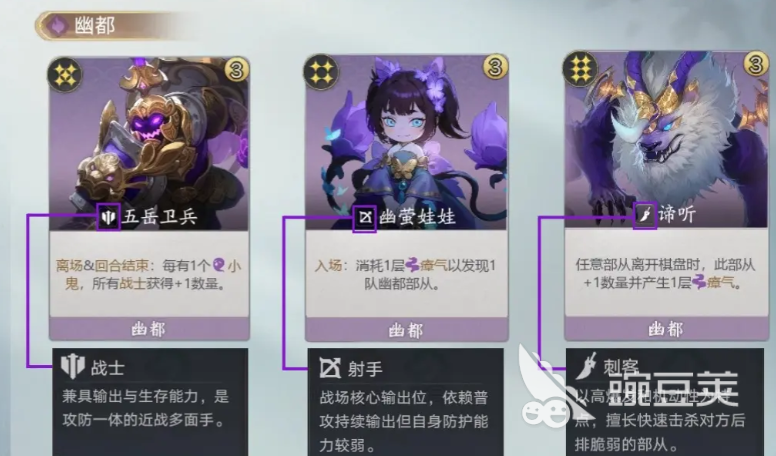 玄武可以给所有的战士带来攻击速度,还有移动速度加成,战斗时间越长,那优势也就更加的明显。运营方面,还有刷牌方面,一开始可以靠阴兵来铺路,奈何桥守卫可以提升战士数量过度。一旦在找到鬼将之后,就可以通过存钱的方法来升天书,后期主要是靠五岳卫兵去迅速的积攒小鬼。整套流程是比较顺畅的,不会卡顿,另外,游戏中的试炼关卡,也可以让大家更熟悉幽都势力的机制。新手来到这里可以尝试一下,很快就能够掌握技巧。