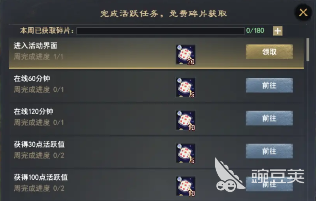 其实玩家一旦通过对应的事件之后,将会拥有元宝,此时也能够购买道具。不得不说整个游戏,在大荒巡游活动的时候,玩家发现这里不仅仅趣味性较强,而且还能够拥有较强的沉浸感。玩家如果每周直接完成了对应的任务,在这样的情况下,他其实可以获得180个骰子的碎片。如果玩家想要合成骰子的话,通常是20个碎片直接合成一个。