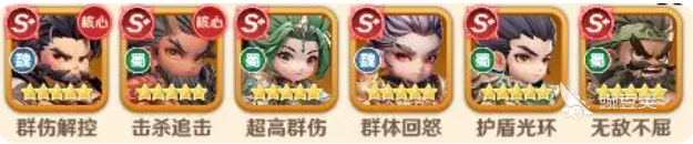 他们拥有的这个机制也可以为我方带来足够的保护,让输出类型的武将在输出的时候也有一定的场次可以快速的上涨,达到足够的输出频次,而定位上面的话,他们俩基本都是这里的群体输出角色了,而他们在利用这样范围输出的时候,带来的超强效果还可以跟曹操的能力搭配起来,因为曹操还有一个技能是可以进行群体的回怒,而正好这里典韦跟关银屏就可以依靠自己的怒气消耗达到足够的一个具体的效果,所以在这里配合了曹操的话,大家打出来的群体伤害就是这个阵容里面主要的一个核心输出,之后的话如果要进行收割的话,就用关羽,因为关羽他的单体能力用来进行最后一个阶段的推图效果是比较好的,这样的一个阵容其实整体来说每个定位上基本都放置了相应的武将,所以整体性是比较完整的。