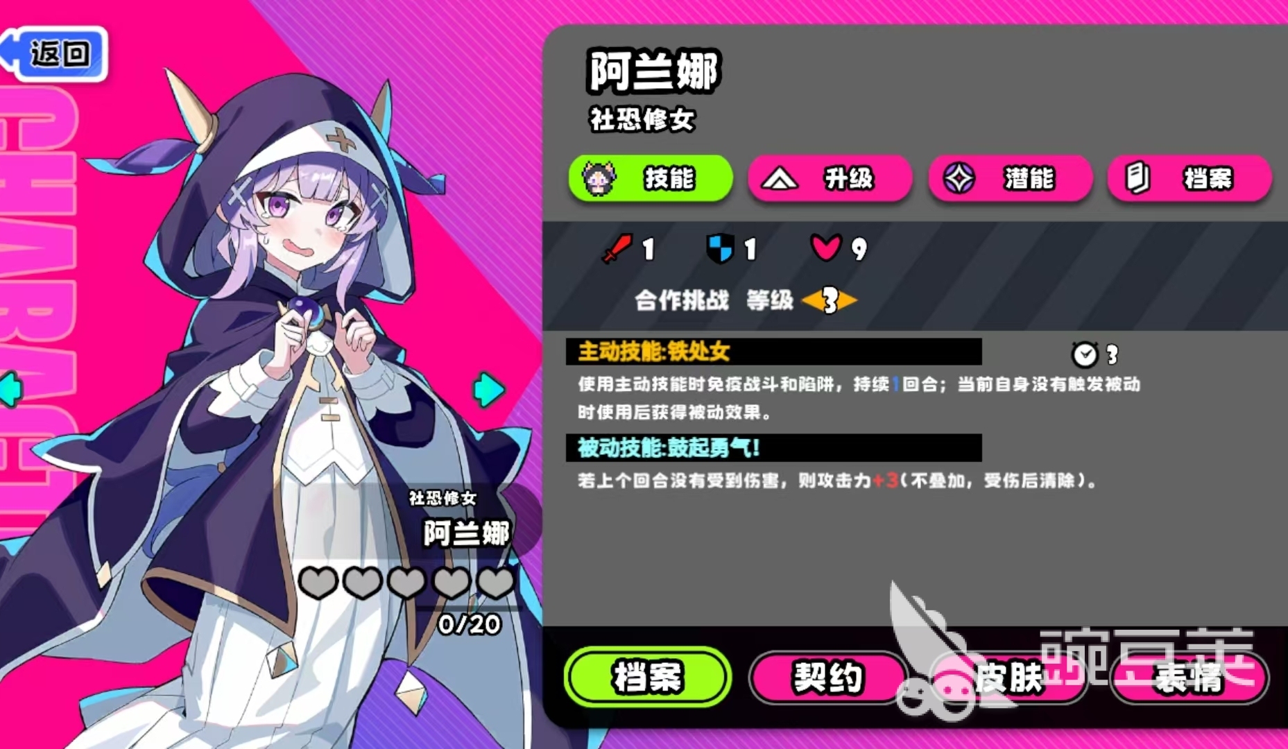 总之,阿兰娜是名很适合在合作模式里出战的角色,能免疫战斗和陷阱的她可在地图上四处乱逛,去为队友踩一些能加增益的格子,成为全队的后勤。吉星派对阿兰娜玩法攻略就介绍到这里,希望玩家们都能从中获得帮助。