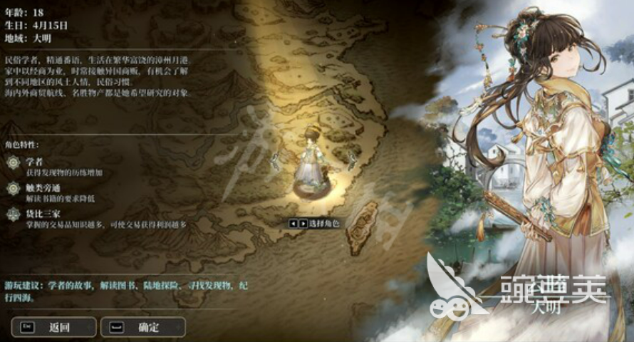 云睦的起始地点在漳州,周边主要是东南亚那一带的港口。按照游戏给出的提示,好像是希望玩家多去陆地探险,毕竟云睦有民俗学者的背景,解读书籍会更快一些。但实际操作下来,前期真的不太建议把重心放在探险上面。因为这时候队伍的负重很低,角色属性也都刚起步,探险能带回来的东西实在有限。与其花大把时间在陆地上转悠,还不如先把航海贸易的基础打好。