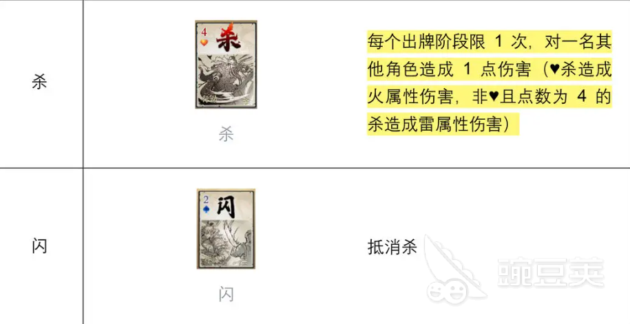 杀是行动牌种的主要牌,在每个出牌阶段玩家都能够打出1次杀,打出杀以后可以对敌方的武将造成1点的伤害值,闪牌则是一种能够将杀给抵消掉的行动牌,当敌方出杀后,我方若是后闪的话,出闪就可能抵消杀,桃则是能够治疗类的牌型,若是我方队友重伤了或者而是自身体力不足时,出桃就能够回复体力,给重伤队友进行救治,酒可以让我方队友在本回合内打出下一张杀牌时的伤害在增加1点,易这张行动派玩家可以看成时其他的行动牌来使用。