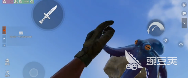 第1款是开荒必备的石头皮肤,谁能想到在开局时用来敲石头,还有砍树木的基础工具,居然会拥有传说级别的牌面。这款皮肤的设计还是很有创意的,一块看似普通的灰色石头上面趴着蓝色的章鱼,章鱼的触须还会微微的蠕动,细节感是很不错的。比较厉害的就是检视动画,当你切换到石头仔细观察时,章鱼就会喷出深蓝色的墨水,视觉冲击力很强,是普通皮肤没有办法比的。而且这石头的手感和原版没差,敲资源时可以看到章鱼伴随着动作轻微的晃动,开荒的枯燥感都被这可爱的设计充冲淡了不少。