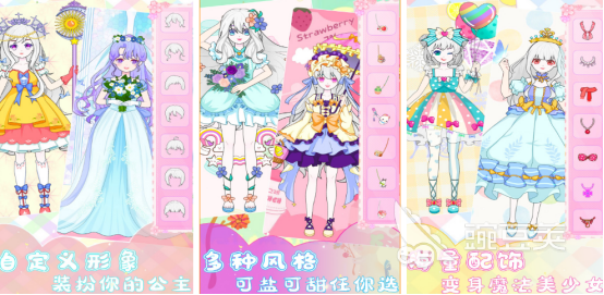 很多女生都有少女心,装扮游戏看似小儿科但却让众多女性爱不释手,装扮少女,有超丰富服装类型任意搭配人物,享受多精美服饰道具带来的特色风格,随时即可享受c位出道。各类装扮作品,与传统单一模式完全不同,有创意满满的连衣裙,还有亮闪闪的特色配饰与珠宝,就连少女的发型和眼睛颜色也能自由挑选,营造出你喜欢的云中仙子。
