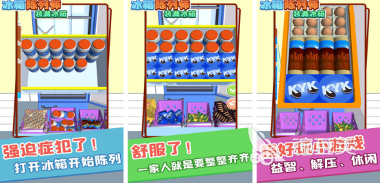 当从超市购物回来之后,需要将这些乱糟糟的物品正确放在一起,完成归纳,经过整理放置在冰箱当中,当看到眼前的画面非常整齐时,一定会让自己心旷神怡,还会获得极强解压感。游戏的整体操作方式特别简单,手指滑动屏幕就能将这些物品正确分类,以此满足自己的收纳欲望。