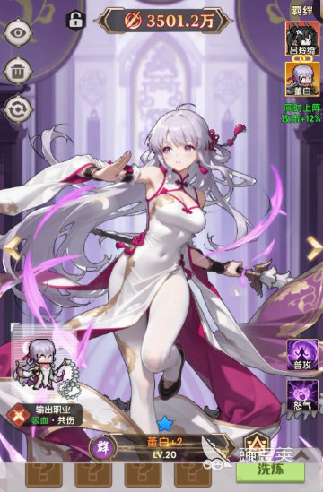 最后介绍的就是董白,董白可能在当前的三国类元素游戏里面是比较少出现的,当然了,他在这里作为一个斩杀类型武将的话,利用自身普攻带来的一些高倍率伤害绝对是可以作用于关键目标效果的,而且使用自己的怒气技能也可以快速的锁定到敌人攻击能力比较高的一些单位,在造成伤害之后还可以建立一些共伤的连接,这是属于董白他专属的一个能力,有一定共伤的时候,就可以给目标带来一些均摊的数值,所以在反制能力上面就可以利用到这个共伤的机制了。