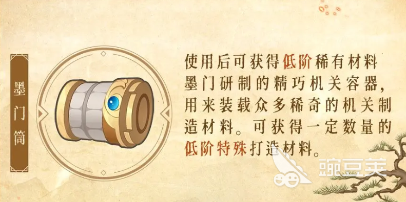 大家在这里能够了解到的路线跟大家选择的天工制作路线都是有关的,对于玩家来说,很多前期在选择了自己的路线之后,在其中会拿到一些比较相关的道具,比如说如果大家选择了天工开物图鉴来进行体验的话,在其中有机会拿到的是墨门筒这个道具的话,在其中是可以获得更多稀有道具材料的,而且在墨门里面,大家一般研究各种机关的时候都会用到这个墨门筒,这也是其中各个机关的制作材料之一,而且获取对应数量之后,大家就可以通过低阶的品质来打造一些材料,那么在日常活动里面大家也是可以快速拿到这些储物保护器的。