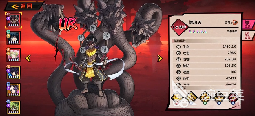另外大家如果想从签到以及任务里面获取到UR角色的话,当前的可能性是不太大的,因为这里签到以及任务里面基本上给的最强的也是SSR品质的角色,想要达到UR品质的话还是需要通上的几个方式途径来进行获取,当然期拿到的角色在使用途径来说基本都是有用的,所以进行获取UR角色他们在本身获取上面就比较难,所以在后期培养上面同样也是有更高难度,大家要先把其中的一个UR角色培养起来都要从新手时期慢慢积累资源才可以,后期继续将UR角色提升起来要用的资源比SSR角色多太多了,这里推荐的UR角色,大家就可以去抽这个憎珀天。