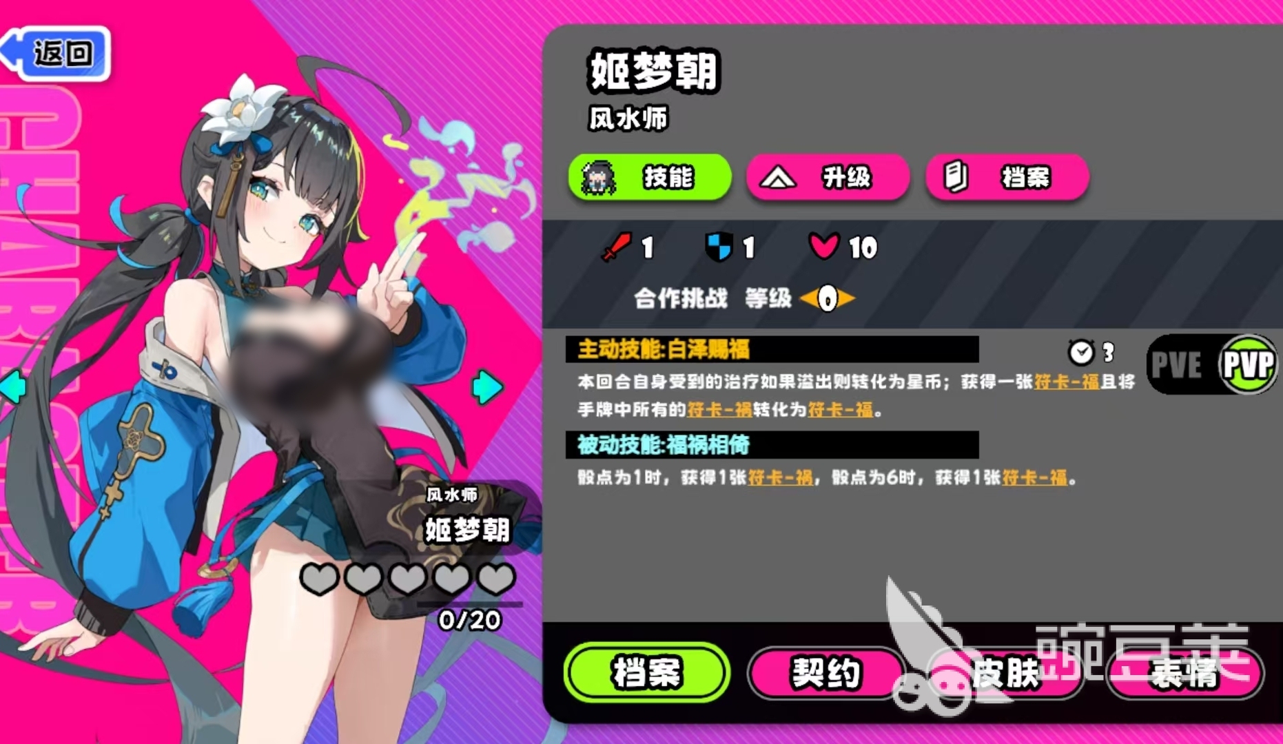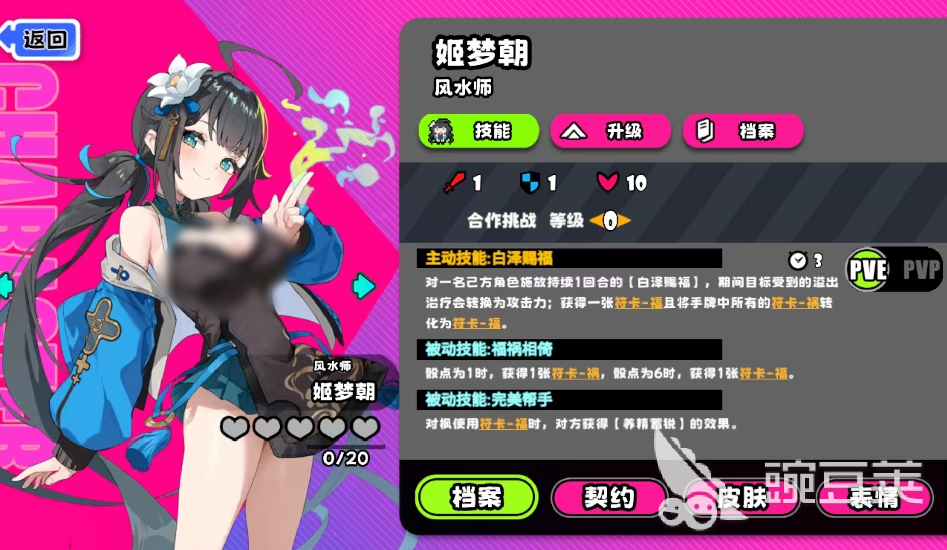 需特别注意:姬梦朝是游戏中极少数拥有三个技能的角色,但第三技能仅限PVE副本中解锁。在该模式下,她的主动技能具备双重判定逻辑——首次释放可为任一友方单位恢复生命值;若治疗量超出目标当前损失血量,则溢出部分自动转化为等额攻击力,直接作用于敌方单位。这一设计使其兼具团队续航与战术输出能力。同时,每次施放主动技还将触发两项关键效果:一是额外获得一张福卡;二是将手牌中所有祸卡强制转化为福卡,极大提升资源稳定性。