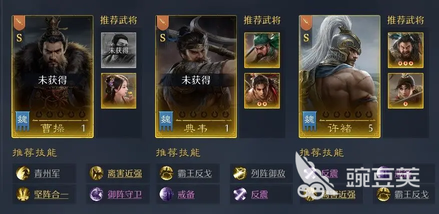 第二套为“铁壁反击流”,主打以守代攻、后发制人,由曹操、许褚、典韦构成。曹操继续担任主将,战法选择【刮骨疗毒】(提供持续治疗)与【坚阵合一】(提升全队防御与生存韧性);许褚定位为前排坦克兼副输出,搭配【鼓破千雷】与【列阵御敌】,强化承伤稳定性与抗压能力;典韦则负责持续施压,选用【心慕霸王】与【长驱直入】,增强突进效率与压制节奏。