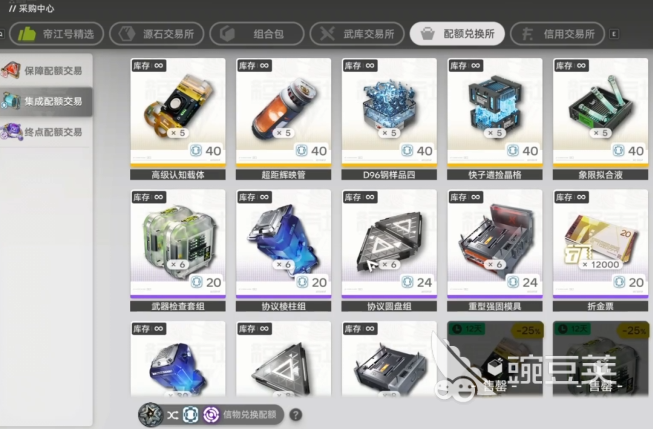 配额无有效期限制,支持长期持有;但使用场景受限——不同来源(如常规召唤、限时活动召唤)及不同类别(如“战术配额”“支援配额”)的配额,仅可在匹配的交易分区内使用,不可跨区转移。各分区商品均设有明确兑换约束:含单次兑换上限、全服累计兑换总量上限,部分高价值道具还需满足前置条件(如特定主线章节通关、某干员信赖度达标、完成指定训练任务等)方可激活兑换权限。此外,系统还提供“素材折算”功能,允许玩家将冗余的稀有养成材料定向转化为指定类型的配额,强化资源再利用效率。
