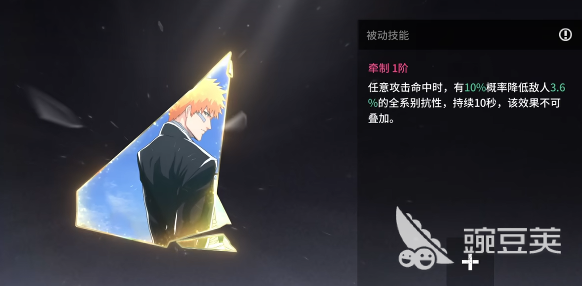 卍解一护比较适合的被动有几种。强化分支攻击这个被动挺实用,因为他平时打输出主要用分支攻击,这个被动能直接提升常规伤害。还有振奋这个被动也不错,可以提高全系列伤害,相当于全面加成。有些被动虽然看起来有用,但实际效果一般。比如10%概率降低敌人3.6抗性这种,概率太低了,触发不稳定,实战作用不大。后期有多余的六星刻印可以继续洗,尽量洗出强化分支攻击或者振奋。
