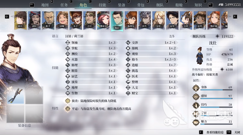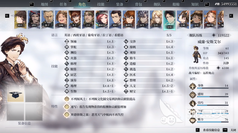 除了上面这些船员之外,游戏里还会有侦查员,侦查员也能提升航行速度,但更多的是能在游戏里扩展视野,如果出现了隐藏地点能及时标记出来,发生了这些事件,也能率先完成判断,玩家如果要航行的话,建议每一种角色的船员都带上一个,接着在根据自己的需求,着重添加对应的船员类型,喜欢战斗的多增加火炮手,对于探索感兴趣的多去增加侦查员,要根据实际的航行目的,调整整体的队伍搭配。