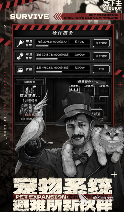 这是一款以写实生存为核心的单机向手游。玩家需在资源极度匮乏的环境中持续搜寻食物、药品与建材,在危机四伏的废墟中逐步构筑可防御的安全据点。游戏采用黑白美术风格,配合大量文本叙事与环境细节,构建出层次丰富的墓土世界观。地宫探索环节设计严密,僵尸波次压力随进度递增,同时支持材料合成、技能升级及动物伙伴协同作战,强化生存维度的策略纵深感与操作反馈。