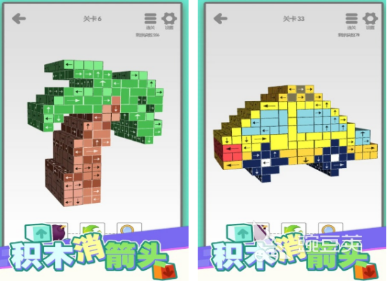 作为以消除方块上面的各种箭头,充满着趣味性的手游,里面所有的一切都是以积木搭建而成的,除了积木的颜色不同,上面所显示的内容也是不一样的,有上下左右不同方向的箭头,甚至是也有一些是没有箭头的。你需要通过点击方块,沿着箭头方向滑动来完成消除任务。涵盖丰富的关卡,每次都能给大家带来很好的体验。