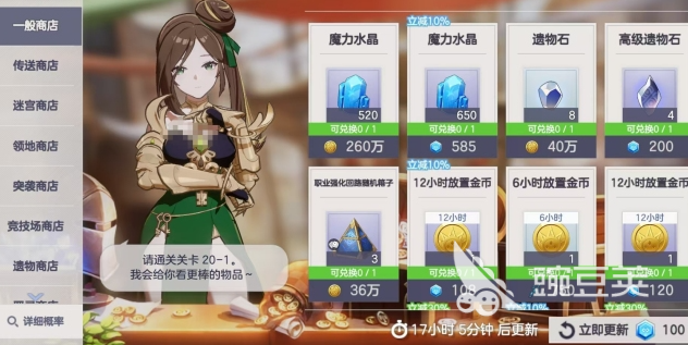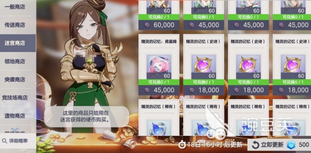 迷宫商店所使用的就是迷宫硬币,优先级最高的就是指定史诗精灵的记忆,在集满碎片之后就可以拿到目标精灵,稳定性可以直接拉满。如果硬币有富余,就可以考虑更换随机史诗精灵记忆,至于其他的道具,性价比太低的话,就可以直接忽略。领地商店的领地硬币产量是比较可观的,并不需要节省着花。可以先换永恒花,又或者是高级抽奖扭蛋,这两个使用的道具就可以有效提升战斗力,在更换完毕之后,然后考虑兑换领地建筑。