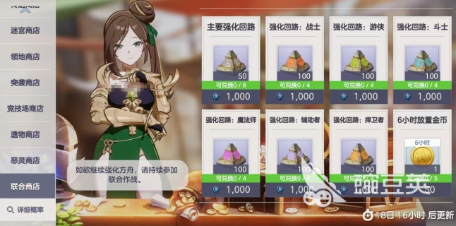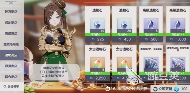 比较基础的就是一般商店,这里主要是用人工突触元件。金币,还有永恒石去兑换。需要注意的就是,只买金币兑换的打折商品,非金币类的道具,千万不要去触碰。永恒石就是游戏里面稀有的硬通货,拿来去兑换一般的普通道具,会有一些亏。人工突触元件也会有更重要的用途,所以不要浪费在这里。传送商店的核心资源就是记忆碎片,应该优先去兑换史诗精灵记忆,在兑换满4个之后,多余的记忆碎片,就可以用来去换强化回路。稀有的精灵记忆完全不需要兑换,卡池里面很容易就会抽到,没有必要去占用宝贵的记忆碎片。