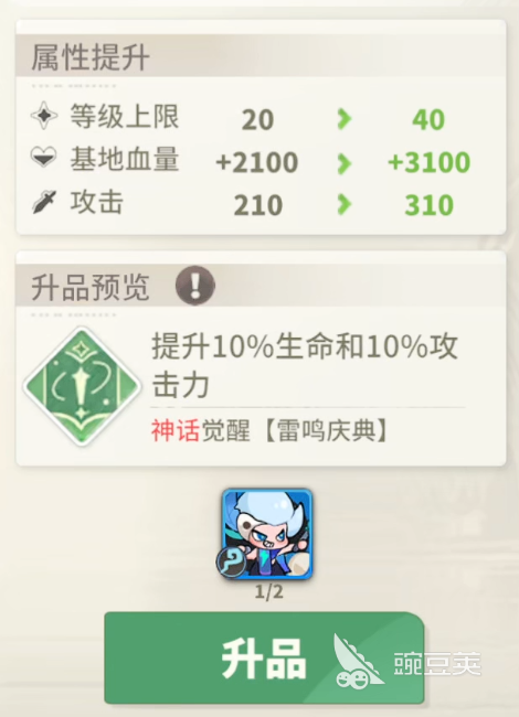 最后再雷震子自身天赋效果上面,大家也是有一个屏障能力可以用的,在雷震子上场之后,被敌人攻击导致自己血量数值下降到40%以下的时候,此时就可以生成一个护盾,这个护盾的效果就是在利用他自身的生命数值,生成其中15%数值的护盾防御,所以在他的生命数值越高的时候,带来的这个护盾可以抗伤的数值就越高,不过在星级比较低的时候,可能这个天赋是只能抵挡boss一招的,面对小怪那防御效果自然 是要好一些的,但是这个天赋因为触发的机制有限制,所以一般触发都是在后半场的时候了,且其中冷却的时间也达到了12秒,所以一定要让雷震子有足够的生存时间在多次用到这个天赋哦。