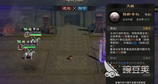 阵容中的核心是董卓,是团队中的肉盾担当,作为三国中比较勇猛的武将,在游戏中同样也会体现这一个特质。悍勇不屈被动技能,在他生命值低于30%时,可以得到伤害减免以及回血效果。在战斗的过程中,把董卓安排在第1位,那就可以吸引敌方的火力,给后排的武将创造出更安全的输出环境,还能靠自己的坦度去消耗敌方的战斗力。对新手而言,想要获取董卓难度并不是很大,培养的成本相对比较低,一开始就能迅速的成型。