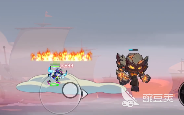 宝箱里一般开都能开出一些比较强力的道具,建议玩家在游戏开局之后率先登上云顶抢夺,和其他成员一起联合作战的时候,可以让战斗能力比较强的角色率先登上云顶,联合在的时候就能释放角色的战斗力,但要注意的是,一旦打开宝箱,里面还会走出一个石头人怪兽,可以在打开宝箱拾取武器之后向上跳跃,这时候就会在玩家当前位置生成火焰,等角色落地之后,火焰就会漂浮在角色的头顶,不用担心会受到持续性的伤害。