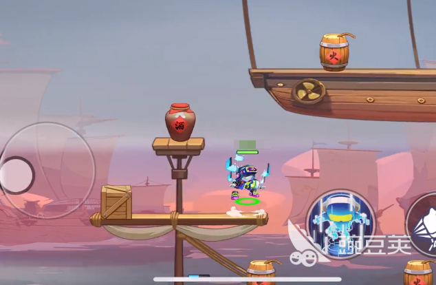 之所以很多玩家想上云顶,主要是因为在云顶上一般都会有宝箱,打开宝箱之后有机会得到强力的装备,想要登上云顶的话,首先要沿着场景里的建筑一直向上,在这个模式里一般都会设定很多艘大船,沿着大船一直向上攀登,看到一个可以悬浮在空中的大船,上面还有一个类似于热气球的球顶,这时候玩家要走到这个悬浮大船的最左侧,首先要登上最左侧的酒桶,然后在这个时候操控角色二段跳,就能顺利跳到云顶,来到云顶之后能看到这里会有一个紫色宝箱。