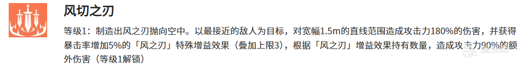 先说说薇薇安的核心技能风切之刃。这个技能释放出去之后会朝最近的敌人飞过去,造成180%攻击力的伤害,同时还会给自己叠加风之刃的增益。这个增益最多能叠3层,每层额外增加5%暴击率,而且每层还会追加90%攻击力的伤害。到了81级以后伤害会提升到190%和95%,181级更是直接飙升到200%和100%,叠加上限还能提到5层。所以前期尽量多用这个技能来叠层数,后面打输出的时候就会轻松很多。