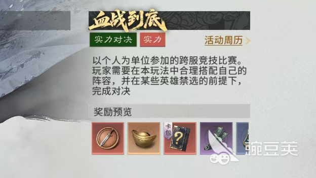 血战到底是跨服的个人竞技玩法,这里要注意一点,是个人跨服,跟你在哪个国家没关系,也不管你是什么势力。进入这个模式之后就是单纯的个人实力比拼,所以平时养成的队伍这时候就派上用场了。不过这个模式有个很特别的地方,那就是每期都会禁用一些英雄,被禁用的英雄是没办法上场的。这个机制就导致你不能总是用那几个固定的武将,得准备多套阵容才行。