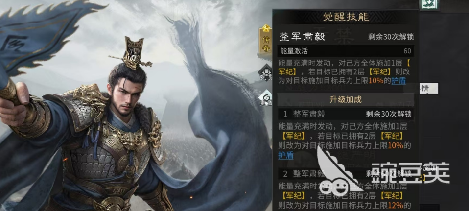 从这个机制来看,于禁在保护队友方面做得还挺全面的,既能减伤又能加血。他的觉醒技能是能量满了之后发动,给全体队友再加一层军纪,如果目标身上已经有两层军纪了就改成给护盾。这个设计让于禁在持续战斗中的作用越来越明显,时间拖得越长他的价值就越高。