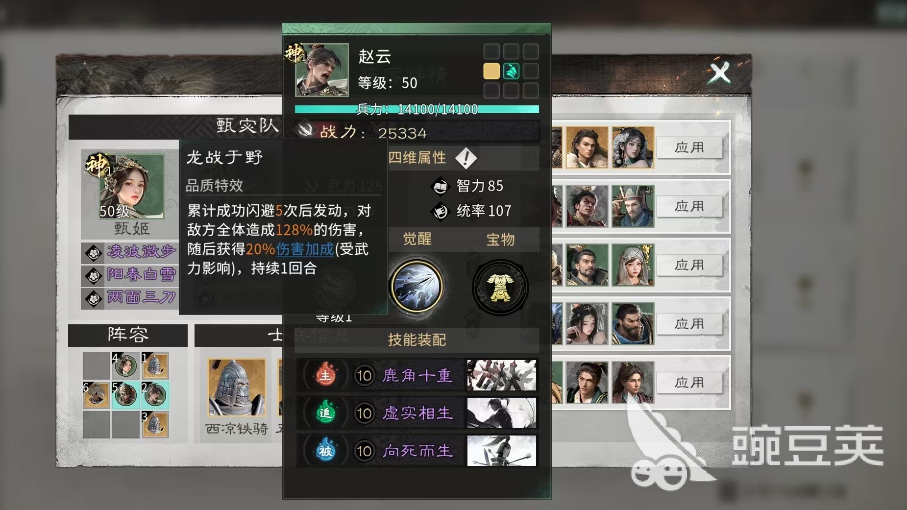 觉醒技方面,太史慈在能量满格时对敌方所有存在单位的行列各释放一次【挽弓贯阵】,并有额外概率重复发动一次。该技能虽无控制或特殊状态附加,但纯伤害结构稳定、覆盖范围广,配合天赋形成的闪避环境,能高效激活依赖闪避机制的队友。典型协同对象为赵云:其觉醒技【龙战于野】需累计5次成功闪避方可触发,对敌方全体造成巨额物理伤害;天赋【七进七出】亦以闪避为前提发动反击。二者搭配可大幅缩短赵云技能启动周期,实现高频爆发与反制压制的战术闭环。