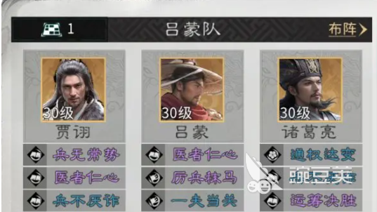 该阵容以诸葛亮“料敌机先”天赋为战术触发轴心——敌方武将激活天赋的瞬时,即可同步施加伤害与控制效果,打断其技能释放节奏。在此基础上,贾诩承担连环输出职能:每当友军成功施加控制,其“乱谋迭出”天赋即被激活,追加高额伤害并有概率附加混乱状态,实现控—伤—再控的闭环链式反应。而吕蒙则定位为前排战略枢纽,“白衣渡江”天赋可强制吸引敌方集火,为全队提供持续性的伤害减免,显著提升整体容错率与续航能力。