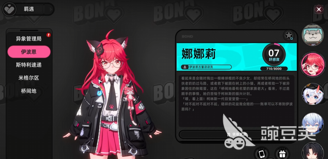 羁遇系统还嵌套了角色专属任务链。以娜娜莉为例,在好感度达到2级、4级、7级时,将分别触发三项独立剧情任务,任务内容紧密围绕其性格特征与世界观设定展开。关键接取入口位于角色界面右上角的“终端通讯”图标(形似手持设备),点击后可查看并承接当前可进行的好感任务。