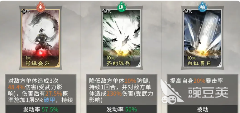 技能卡配置上,主动技推荐【层锋叠刃】,兼顾伤害与破甲效果,强化对高防目标的穿透能力;被动技首选【白虹贯日】,提供暴击率加成,与天赋中的暴击增益形成叠加,进一步放大斩杀转化效率。当天赋达3级后,吕布自身即具备额外暴击提升,配合该被动可实现双重暴击增幅,显著提升伤害期望值。