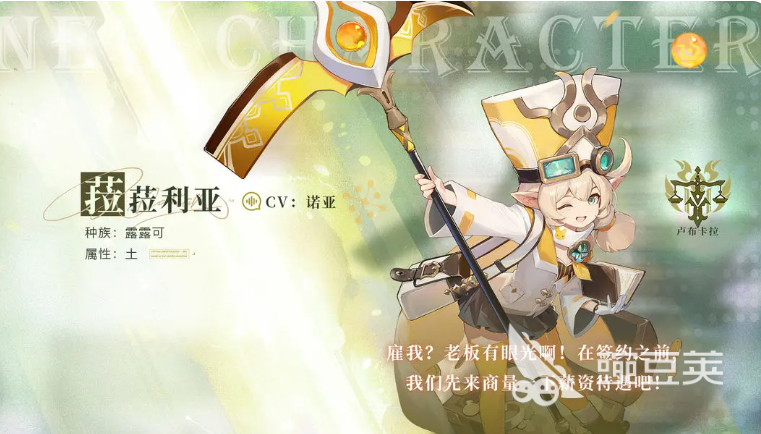 第四位角色菈菈利亚,隶属卢布卡拉势力,露露可种族,远程辅助型角色。外形呈现幼态化特征(外观约6岁,实龄26岁),是游戏中唯一已实装的露露可族角色。技能机制聚焦于中远距离支援,具备稳定土元素附着能力,可在团队作战中提供持续控场与环境干扰效果,尤其适配需要地形干预或元素覆盖的战术场景。