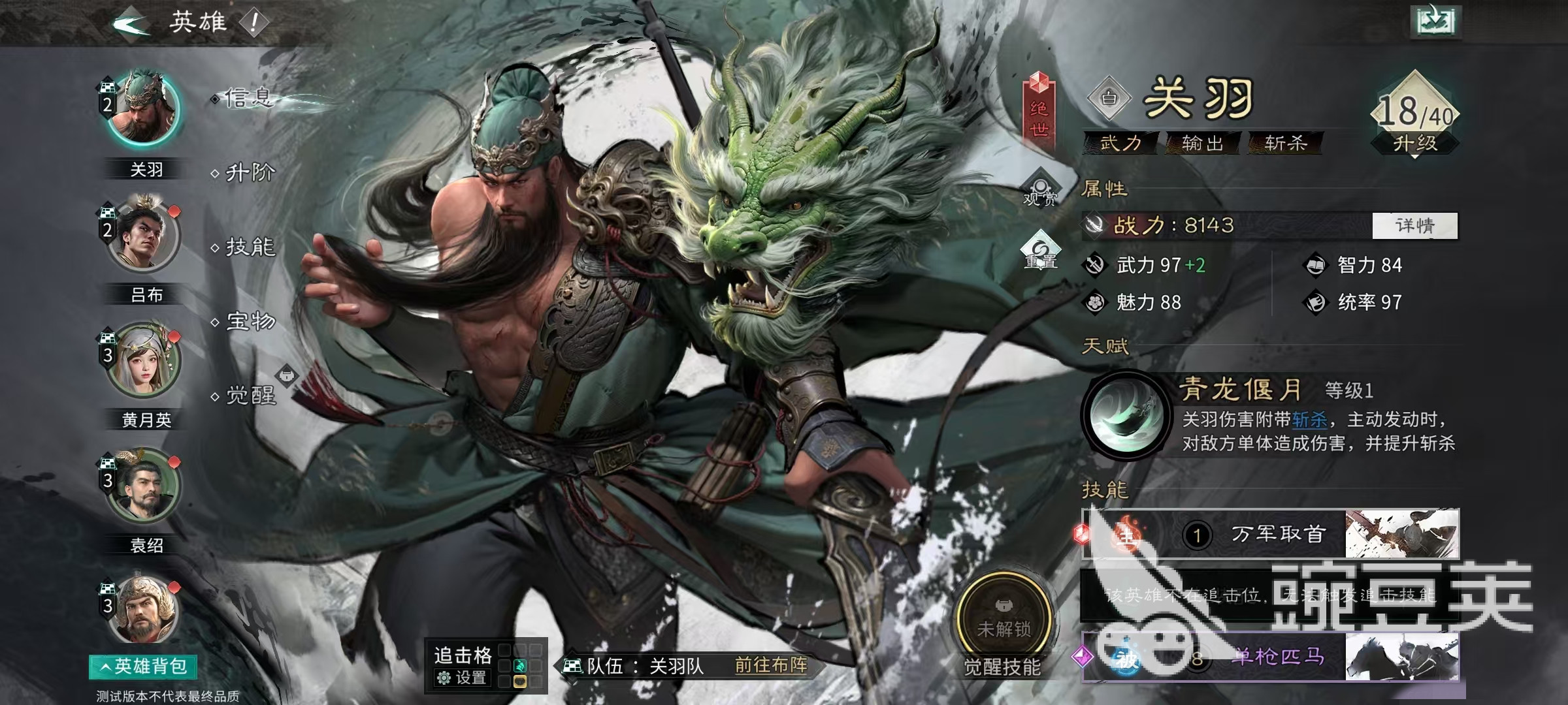 本套推荐阵容采用“关羽—郭嘉—貂蝉”铁三角组合,定位为高爆发、强联动、快节奏的斩杀体系。其中关羽承担主输出与终结职能,依靠天赋锁定敌方武力最低目标并叠加畏状态,能量满层后触发威震华夏实现精准斩首;郭嘉作为核心副C,不仅提供多段范围伤害,更关键的是提升全队天赋技能发动概率,强化连锁反应;貂蝉则负责增益传导与控制衔接,其天赋可大幅提升关羽对男性单位的伤害,并赋予额外两次追击机会。