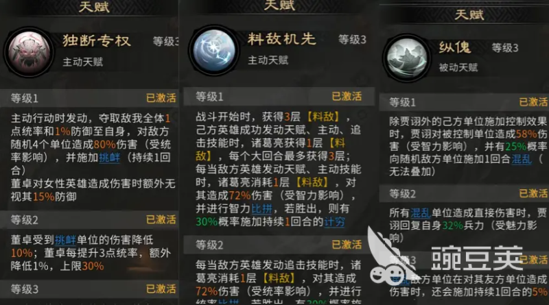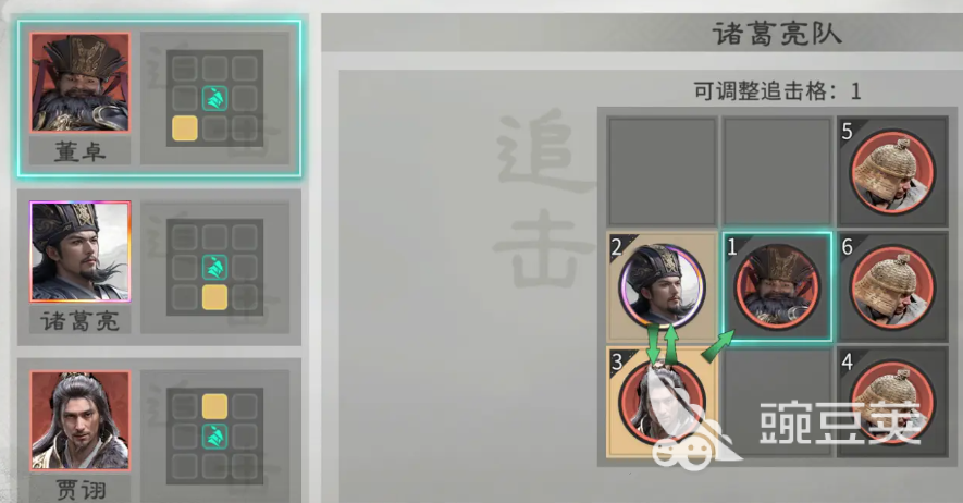 本阵容构建逻辑强调“控场优先、节奏主导”。兵种配置建议前排统一部署藤甲兵,共三名,利用其高生存特性吸收伤害,为后排输出单位争取稳定施法空间。英雄站位需精细规划:贾诩应置于诸葛亮与董卓的追击触发范围内;而董卓本身无需占据追击位,此举可确保其技能释放后,由其他角色高频触发追击效果,形成连贯控制反馈。董卓定位为开局控制发起者,其天赋技能【独断专权】可立即为我方全体降低1点统帅及1%防御,同时对敌方随机4个目标造成80%伤害,并附加1回合挑衅状态——受挑衅单位仅能锁定董卓释放技能,从而大幅削弱敌方整体输出效率与战术灵活性。