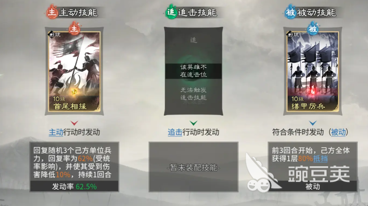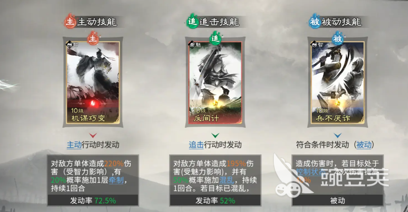 贾诩在此体系中并非主控者,而是控制链的最大受益者。当队友成功施加控制效果时,贾诩可对被控单位额外造成58%伤害;若混乱单位对其造成伤害,则可恢复自身兵力;若友军误伤贾诩,还将触发额外减益效果。其技能组合聚焦于精准收割与爆发强化:主动技能必带【兵无常势】,自动锁定敌方兵力最低单位进行打击,加速敌方减员进程;追击技能同样推荐【计谋巧变】,该技能伤害随敌方所受控制状态数量增加而提升,中后期控制叠满后可打出极高瞬时爆发;被动技能延续【兵不厌诈】,确保在控制链持续运转期间稳定提升输出权重。整套阵容的战术支点,正是董卓的【挑衅】与诸葛亮的【技穷】双控协同,构筑起难以突破的节奏壁垒。