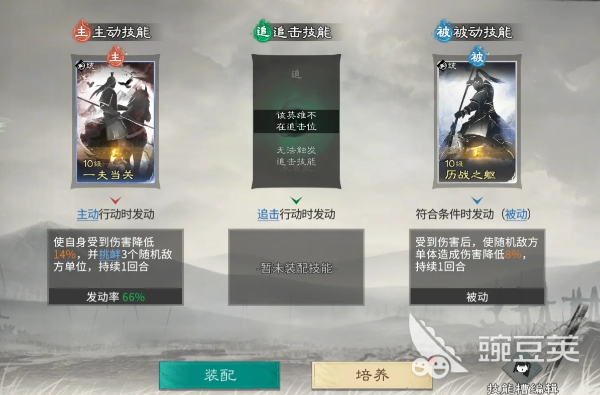 在技能装配策略上,“一夫当关”因其兼具减伤与挑衅双重效果,成为董卓最优主动技能选择,建议优先配置于主动技能位;若存在追击格,则同步装备于追击技能栏以强化控场频率。被动技能推荐“万战之躯”,可对攻击董卓的敌方单位施加伤害降低效果,进一步巩固其前排生存能力与抗压强度。阵容构建方面,经典组合如吕布+貂蝉+董卓,依托高爆发与连携控制形成速攻闭环;另一主流体系为董卓+诸葛亮+贾诩,以多层控制链与策略型减益覆盖战场,兼顾稳定性与压制力。