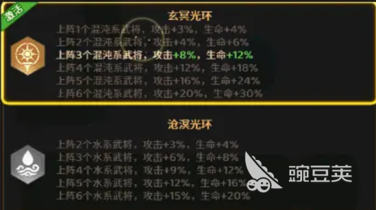 推荐搭配阵容:赵云、小乔、甄姬、吕布、典韦、诸葛亮。该组合可同时激活两大关键羁绊——“沧溟”(3水系)与“玄冥”(3混沌)。其中,3水系上阵触发沧溟光环,提供全队6%攻击力与8%生命力加成;3混沌上阵激活玄冥效果,进一步提升8%攻击力与12%生命力,显著强化队伍整体生存与输出稳定性。