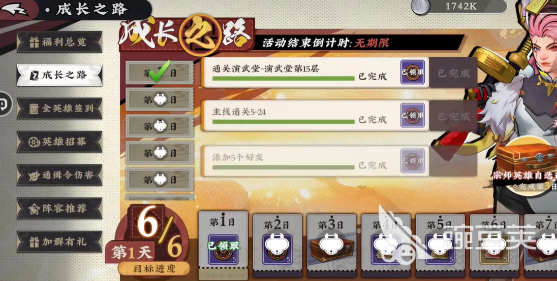 成长之路设有结构化日常任务体系:连续7日签到可加速整体进度条累积;竞技场每日需完成至少3次对战,方可领取用于抽卡的关键资源“胶片”;演武堂通关层数解锁与第2日任务强绑定,不同日期对应不同资源类型(如强化石、突破丹、共鸣晶核等),奖励内容随任务节点动态变化。此类设计既保障了用户活跃度,也确保了资源获取路径的多样性与可持续性。