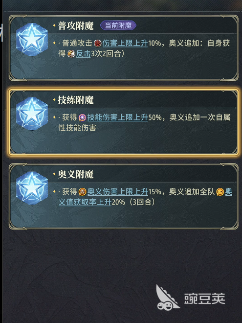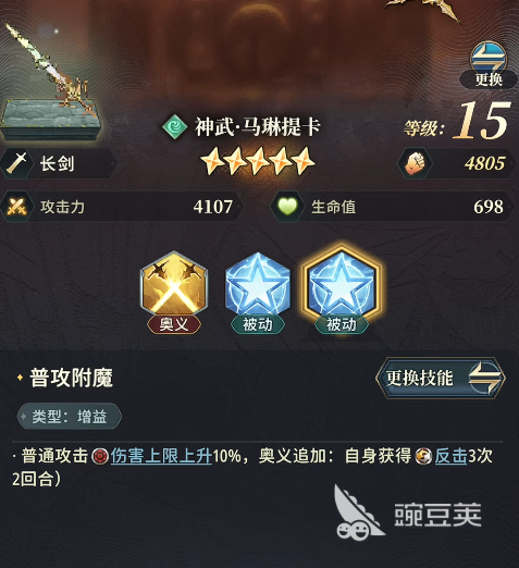 其被动技能进一步放大反击收益——每次成功反击额外造成10%伤害;另一项可选奥义则建议优先选择属性类被动(如防御/生命/抗性加成),以支撑反击队所需的持续承伤能力与节奏续航。