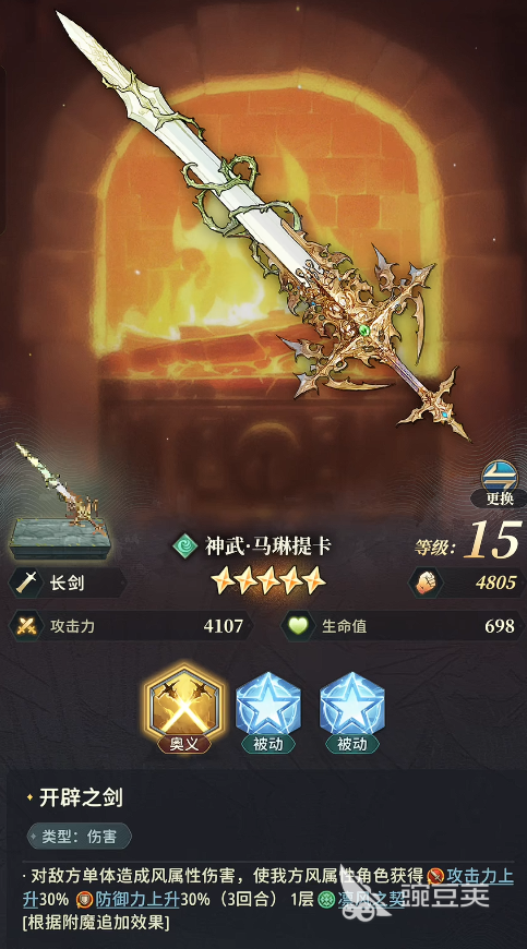 该武器的核心机制为奥义技“风剑”:释放一道高倍率风属性伤害,并在命中后为角色赋予持续增益——攻击力与防御力同步提升30%。需特别注意的是,该效果仅对风属性角色生效,因此马琳提卡本质是一把高度特化的风系专武,非风属性角色佩戴时无法触发关键增幅,整体收益大幅受限。