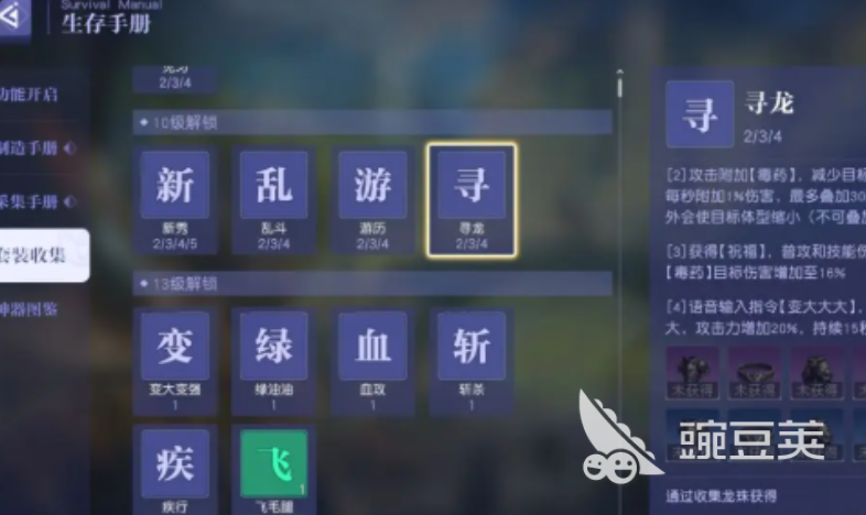 以寻龙套为例,该套装不仅提供显著的伤害加成,更是触发“龙珠”系列支线任务的关键条件。完成对应任务链后,玩家可逐步解锁龙珠收集进度。除寻龙套外,生存手册内还完整收录了乱斗套、绿油油套等多套专属装备体系。每套装备均与特定职业深度绑定,不同职业在属性侧重、技能联动及战斗节奏上存在明显差异,因此装备选择需结合职业特性进行策略性配置。